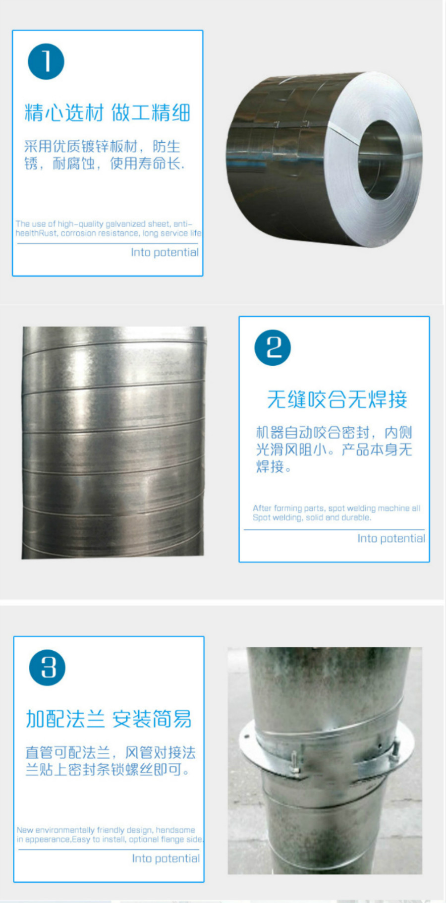 深圳风管厂家生产的三通插口是一款三通管路连接头,可用强电解质、成品油、蒸气、酸碱性物质等。三通插口,主要是用以三条管路的连接,避免渗水、漏汽等。圆螺旋风管及零配件、扁圆形螺旋风管及零配件是海外比较好的螺旋风管加工工艺生产技术,具备摩擦阻力小,抗压强度高,抗腐蚀,内腔表层润化、整平、机器设备方便,密闭性好、圆螺旋风管适用范围强等特点,在商务大厦、商场、正宗、工厂、酒店餐厅、陶瓷窑炉、除尘等工作的自然通风或冷热气的传输普遍可用。螺旋风管具备下列几出色特点:抗压强度好、摩擦阻力小、机器设备简单方便、可用工作广、螺旋风管标准广。
